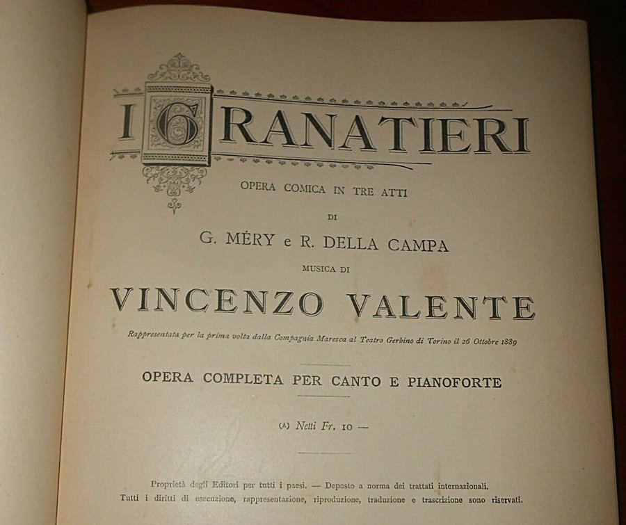 Nel 1909 Vincenzo Valente si recò in Francia, a Marsiglia e poi a Parigi, attratto, come tanti altri grandi artisti, dalla ricchezza della tradizione culturale e dallo scambio di idee e di esperienze. Il suo nome, non nuovo nell’ambiente francese, si affermò in tutta la sua grandezza. “I Granatieri” furono tradotti in francese e diedero al maestro la soddisfazione del trionfo dell’operetta italiana nei teatri francesi.